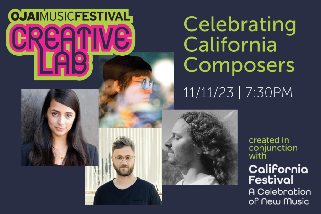 This concert is produced in conjunction with a Green Umbrella program by the Los Angeles Philharmonic New Music Group, featuring different, larger-scale works by the same four composers on Tuesday, November 14, 2023 at Walt Disney Concert Hall. Visit CAFestival.Org for more information about the California Festival