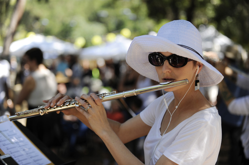 OJAI, CA- June 11, 2015: Music Director Steven Schick leads ICE, red fish blue fish and CalArts ensemble in the West Coast Premiere of John Luther Adams’ Sila: The Breath of the World in Libbey Park during the 2015 Ojai Music Festival.