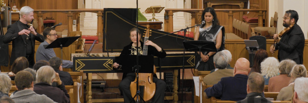 The program also features French Baroque selections by Elisabeth Jacquet de la Guerre and François Couperin, plus a solo Hindustani vocal set by Saili Oak with tabla accompaniment.