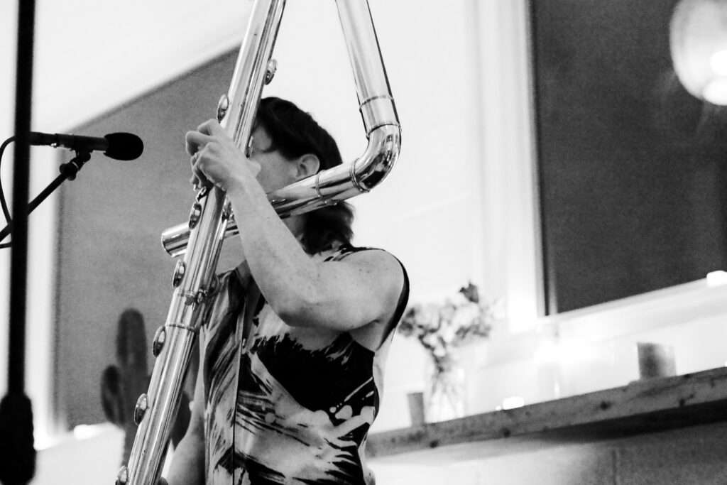 In its West Coast premiere, Australian composer Liza Lim’s Density 2036 contribution Sex Magic for solo contrabass flute and electronics centers Friday afternoon. Inspired by Claire Chase’s towering contrabass flute (Bertha), Sex Magic evokes and celebrates women’s power across time and cultures, evoking the giant bass flutes of Papua New Guinea and the Australian didgeridoo in a work that ritually moves across three altars, creating a mystical, mesmerizing evocation of both the present and the timeless past.