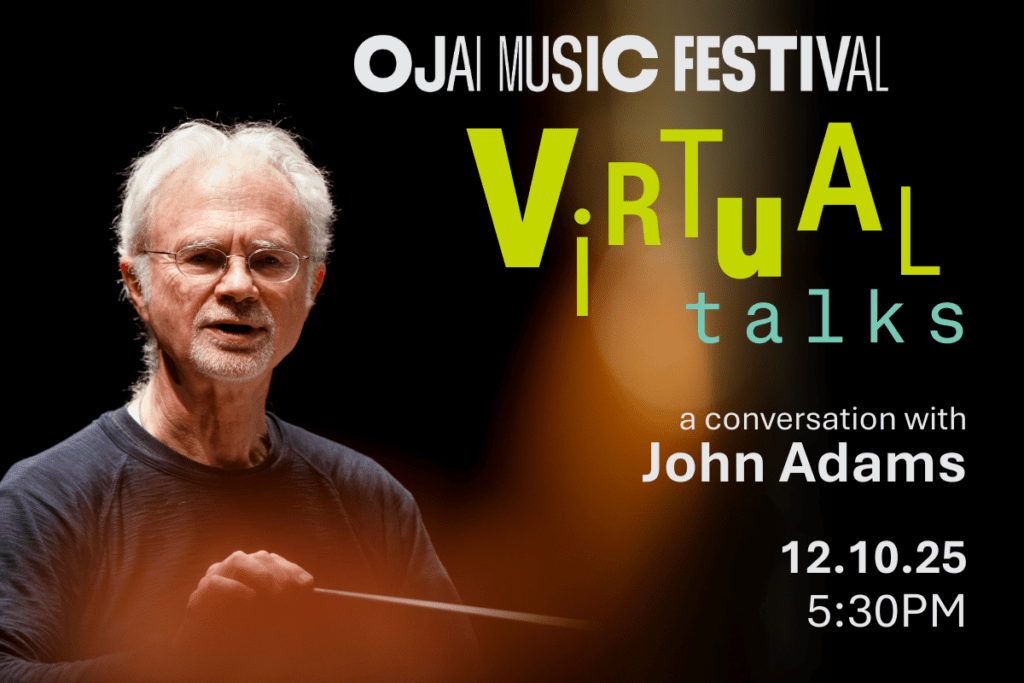 In celebration of the Ojai Festival’s Eight Decades of Discovery, Creativity, and Community, we welcome back John Adams as our special guest for our Virtual Ojai Talks. With Ara, John will share some of his favorite Festival memories as both composer and conductor, as we look forward to hearing his music at the 2026 Festival led by their good friend Esa-Pekka Salonen.