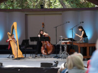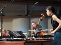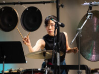 2025OjaiMusicFestival THU 6-5-25 8pm_musicians Steven Schick-percussion, Wu Wei-sheng, Susie Ibarra-percussion perform bayou-borne by Annea Lockwood_credit Timothy Teague (TOT_8844)