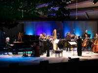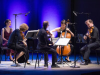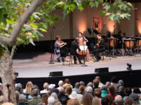 2025OjaiMusicFestival SUN 6-8-25 1030am_Alex Peh (piano), music director Claire Chase (flute), Susie Ibarra and Levy Lorenzo (percussion) and JACK Quartet perform Sky Islands by Susie Ibarra_credit Timothy Teague (TOT_0634)
